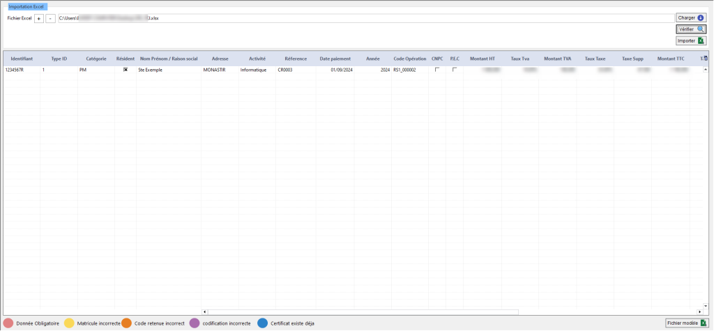 Le logiciel TEJ intègre une fonctionnalité puissante et très attendue : l’importation directe des données depuis un fichier Excel. Conçue pour répondre aux besoins des utilisateurs disposant déjà de données saisies dans des tableurs ou d’autres systèmes, cette option permet de gagner un temps considérable dans la création des certificats. Avant l’importation finale, le logiciel effectue une vérification automatique des données importées, avec un système de codification par couleurs pour signaler les erreurs, incohérences ou oublis. Cette phase de validation intelligente évite les erreurs critiques et garantit une intégration fiable et conforme aux normes de la plateforme TEJ du ministère des Finances tunisien.
